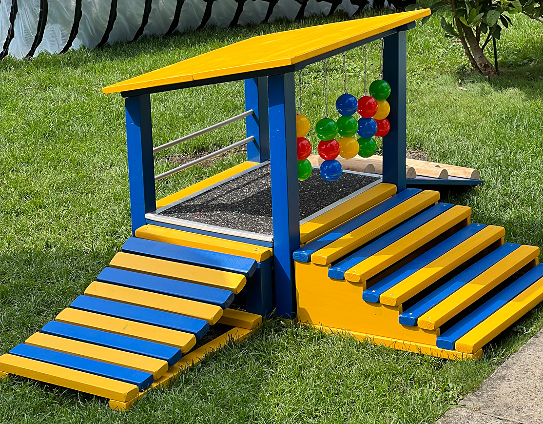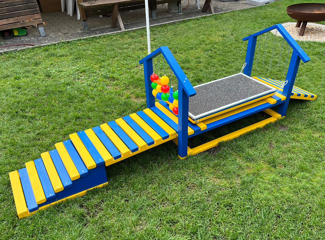 Wir als Züchter sind in der Prägungsphase für die Welpenaufzucht gefordert. Mit unseren Spielgeräten wollen wir den Erkundungsdrang ohne Stress und altersgerecht fördern. Unser Garten wurde eigens dafür umgestaltet.
