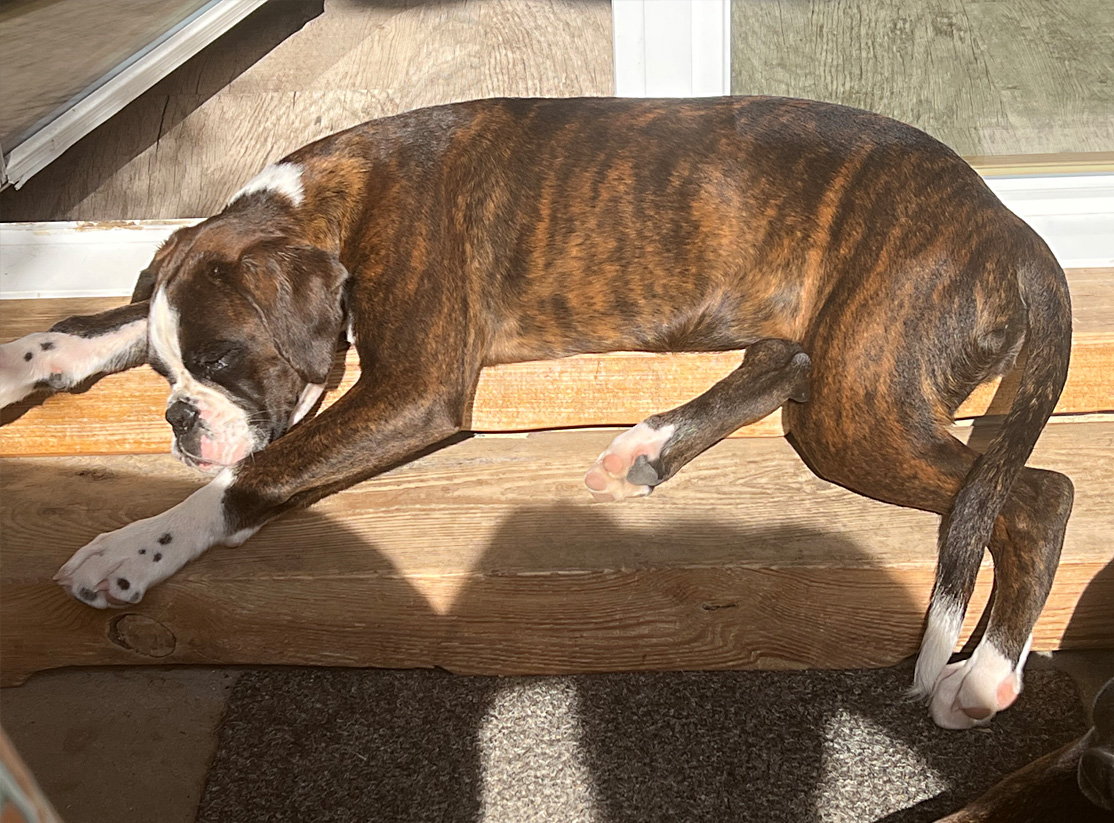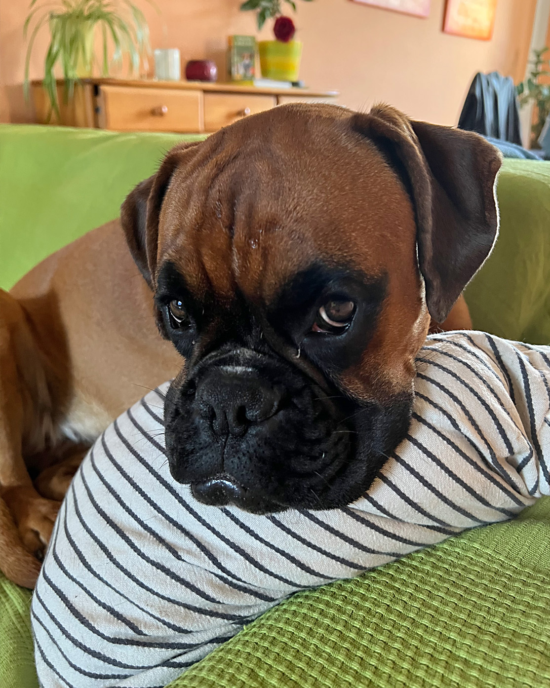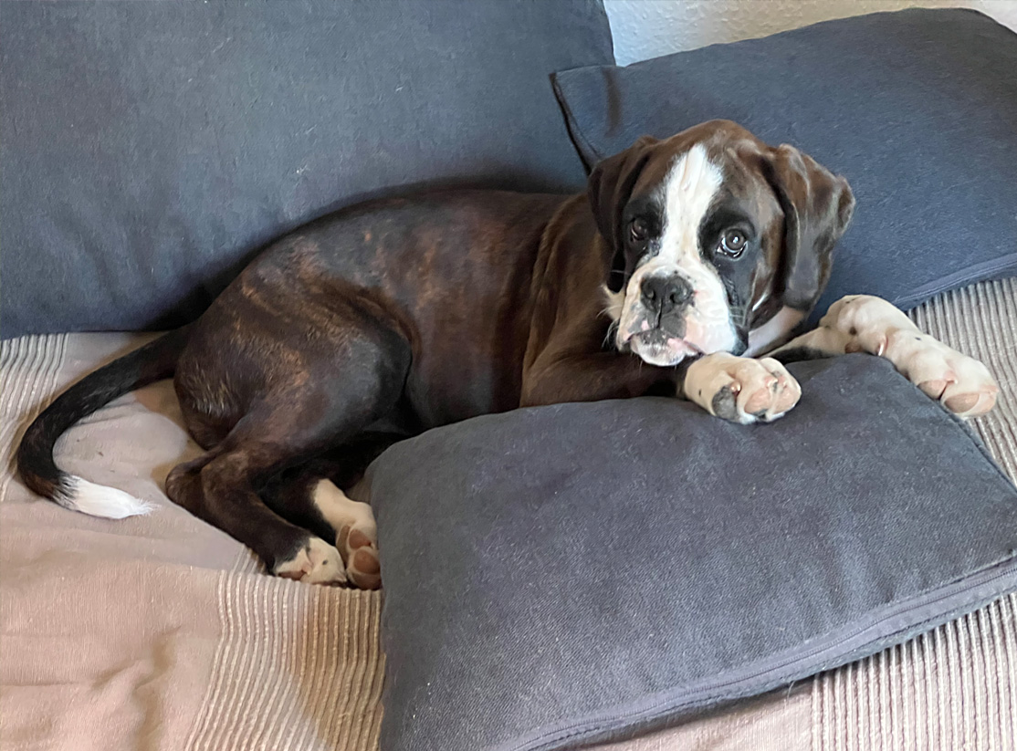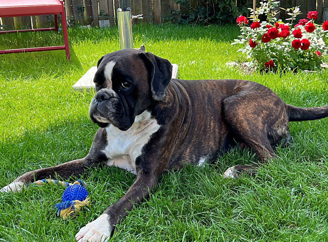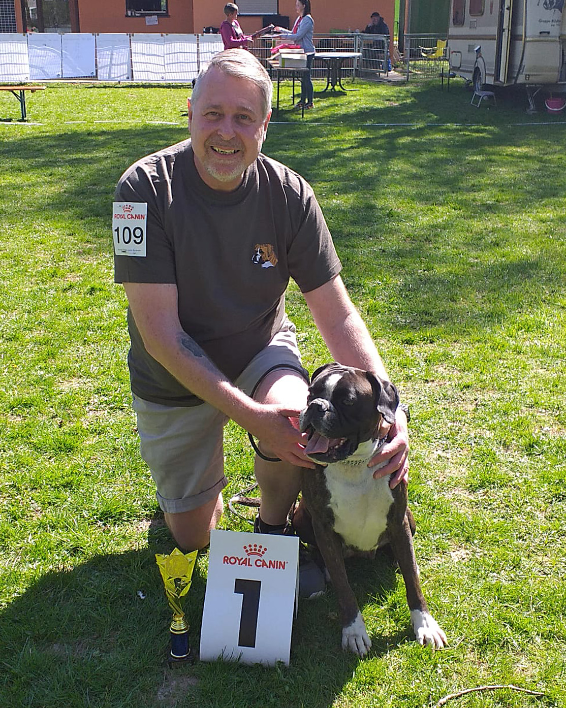 Beurteilung: Gross, quadratisch, mittlere Substanz, typvoller, femininer ausdrucksvoller Kopf, dunkle Augen, leicht mandelförmig, mittelbreites Gebiss, gleichmässig Gewinkelt, fehlerfrei in der Bewegung.